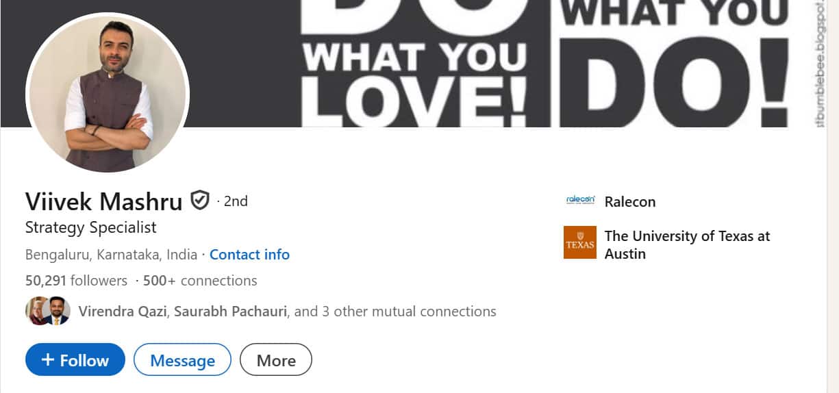 According to the latest update in is LinkedIn profile, Viivek is President – Strategy and Growth at Ralecon for nearly two years.