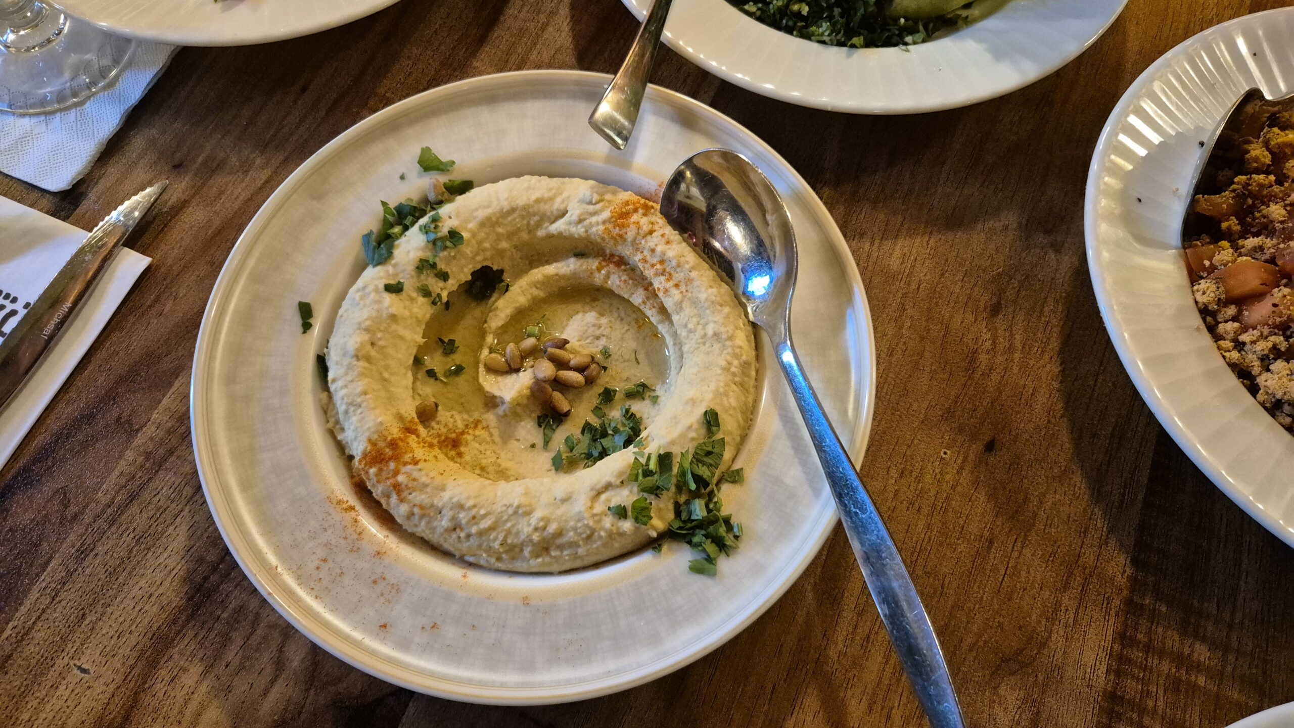 Hummus at Tishrin restaurant, Nazareth. (Gabriel Colodro/The Media Line)