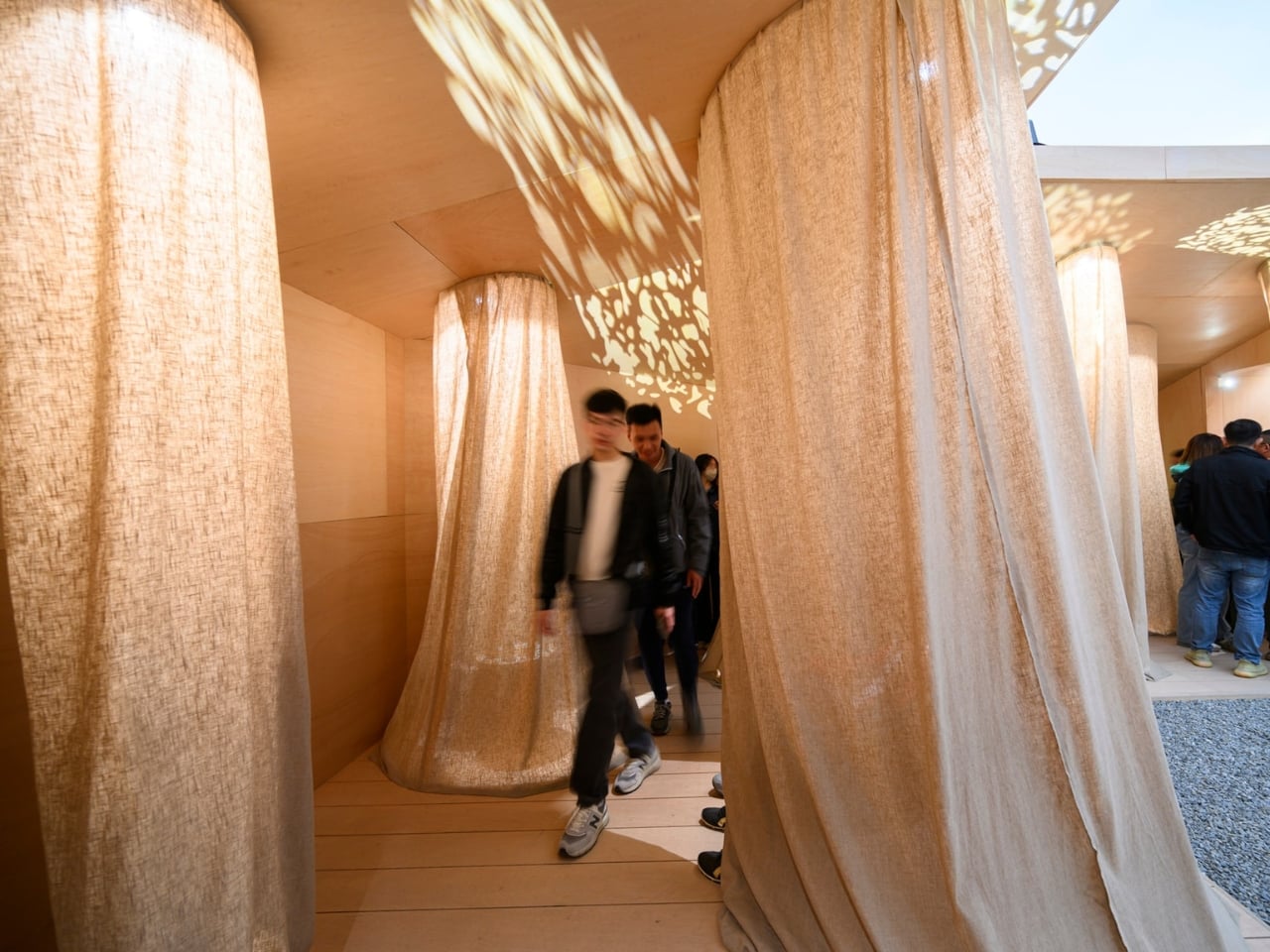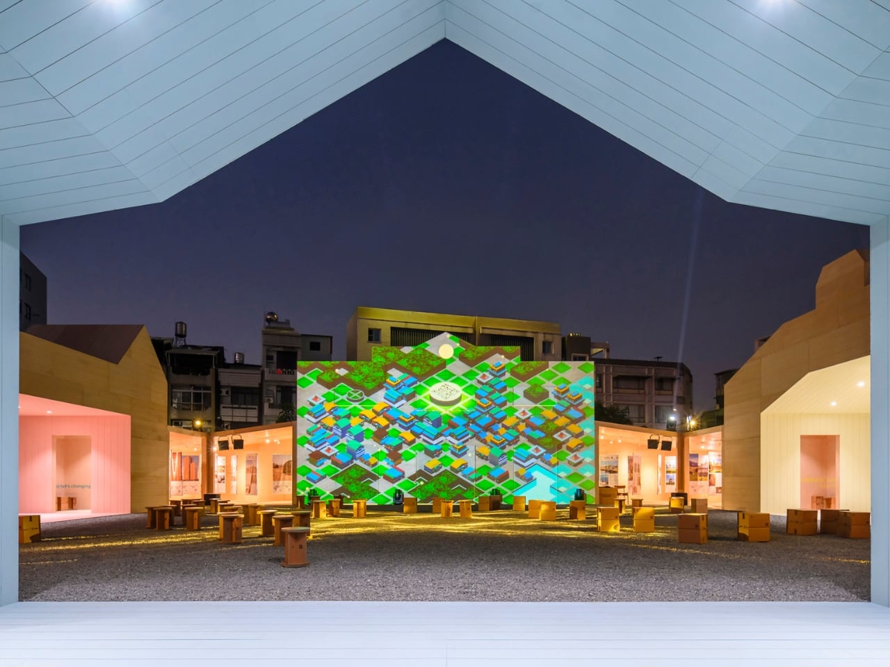 Inside, the exhibition takes visitors on a journey through wood’s past, present, and future. Pastel-colored gateways (a softer touch than you’d expect from an architecture exhibition) guide people through different zones. There’s a forest-themed area exploring how timber is grown and harvested, and “the workshop,” which celebrates the historic craftsmanship that once defined the region. The exhibition doesn’t just look backward, though. It also positions Chiayi alongside global timber leaders like Norway and New Zealand, showing how engineered timber can bridge traditional culture and contemporary construction.