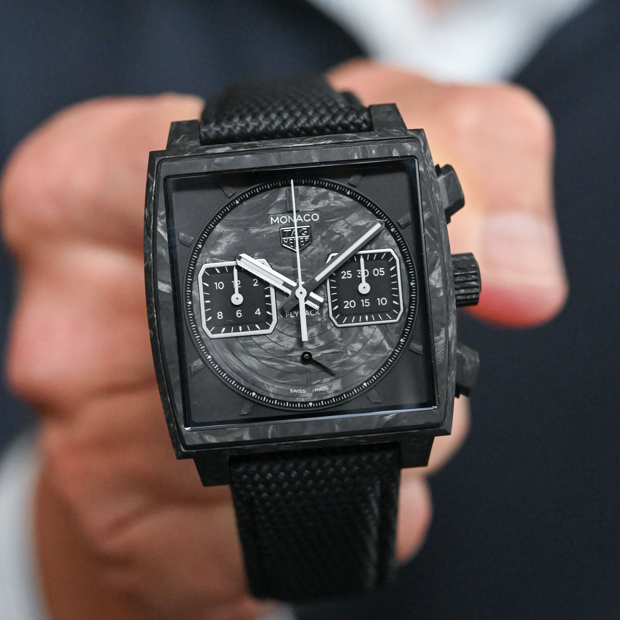 For the last watch in this selection, we’re moving from the past to the future, with the Monaco Flyback Chronograph TH-Carbonspring. And here, it’s not really about the watch, even though this blacked-out, full-carbon take on the Monaco certainly has arguments. What matters is what beats inside the watch, an automatic, in-house movement equipped with a rather revolutionary solution, the TH-Carbonspring technology. Created as an alternative to the patent-protected silicon hairspring, TAG Heuer’s carbon hairspring is finally seeing production. Produced in the hyper-controlled environment of a laboratory, it’s all about science applied to watchmaking, offering high magnetic resistance, strong shock resistance (up to 5,000Gs), and a lower mass that reduces inertia and improves isochronism. An impressive moment for the brand, which befits the TAG part of its name.
