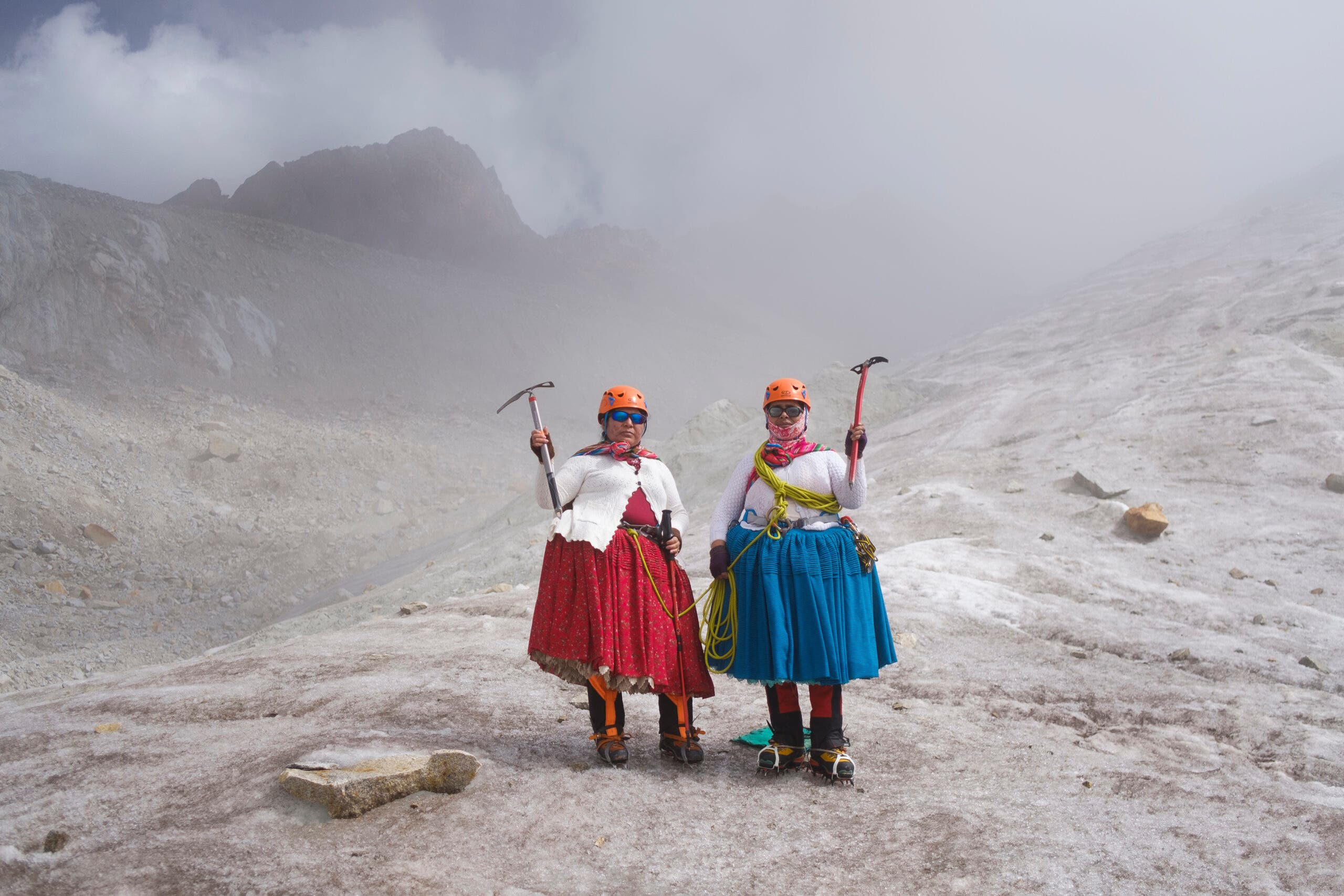 Last spring, we sent Bolivian photojournalist Manuel Seoane to explore Huayna Potosi with Cecilia Llusco (pictured right), a leader of the local Cholitas Escaladores movement. Seoane facilitated an interview with Llusco about how she first began climbing in a country racked with gender discrimination and why she’ll always wear a skirt when she climbs. This photo is a study in visual contrasts—and a landscape as stoic as the resilient subjects within it.