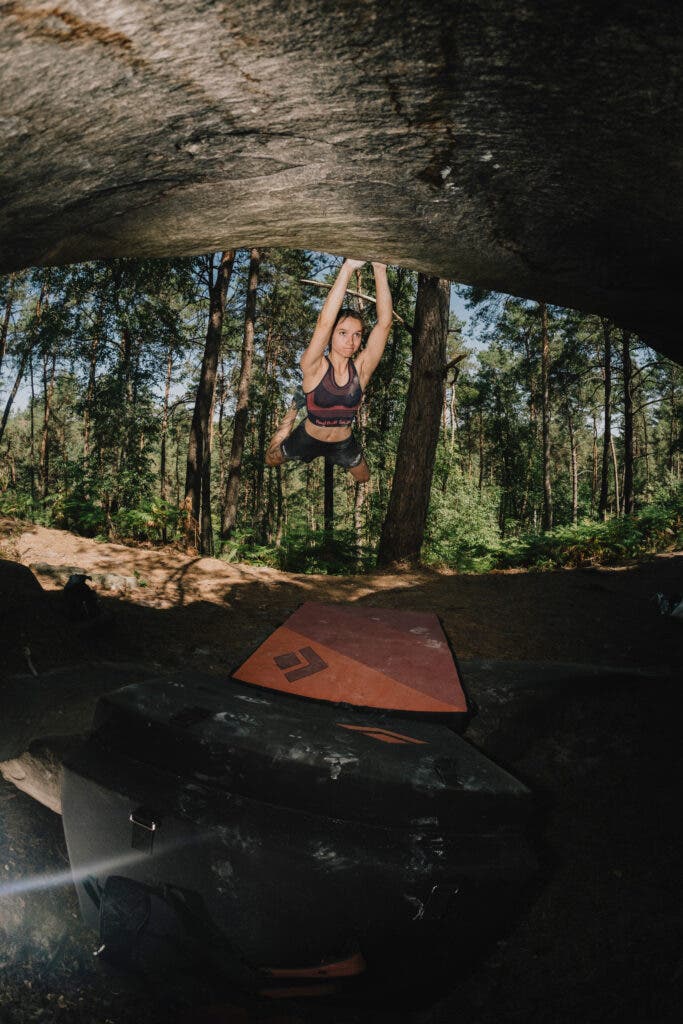Has anyone ever looked more chill catching a feet-off dyno than Oriane Bertone does here? During a day of bouldering around her local spot—Fontainebleau—the French comp climber looks like she could be merely contemplating where to go to dinner in Paris that night.