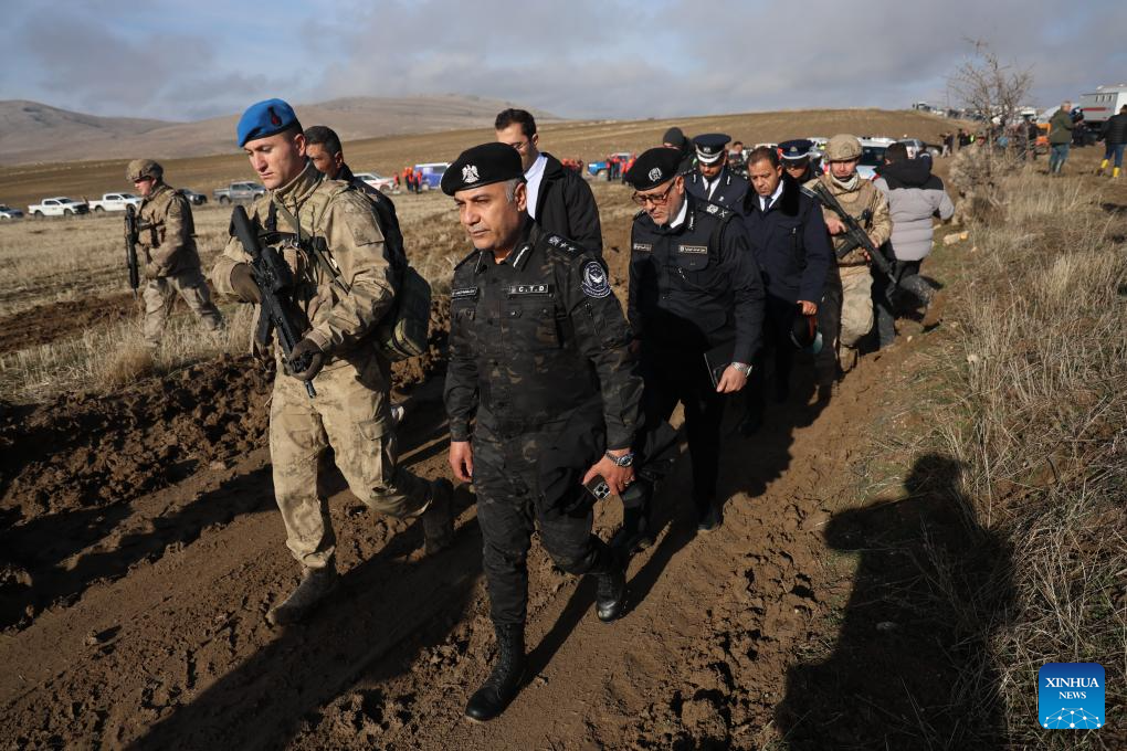 A Libyan military delegation arrives at the plane crash site near Kesikkavak village in Ankara’s Haymana district, Türkiye, on Dec. 24, 2025.