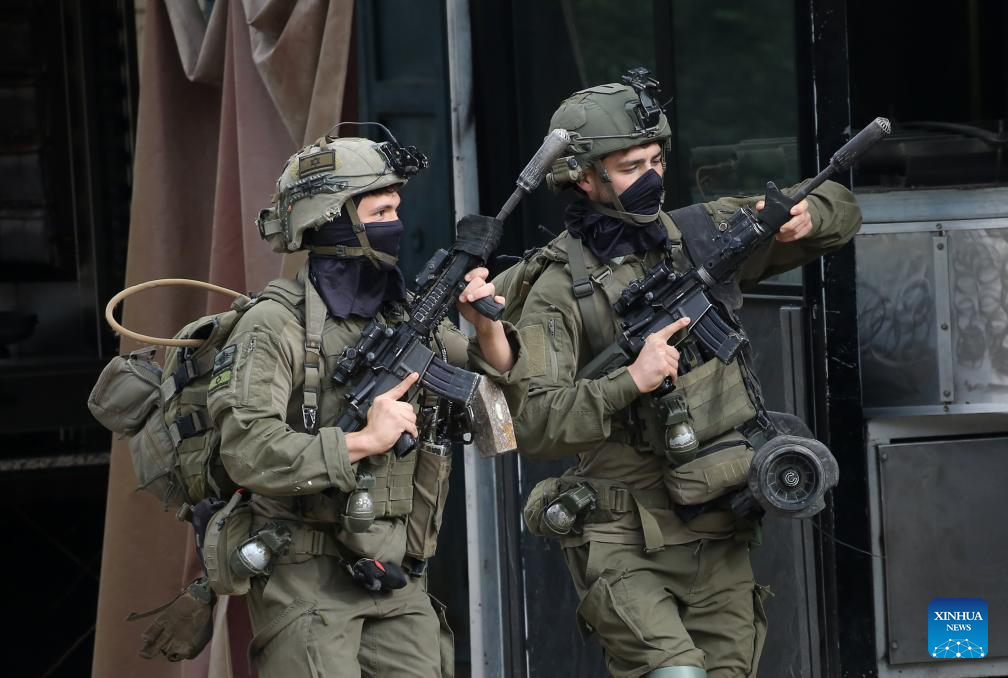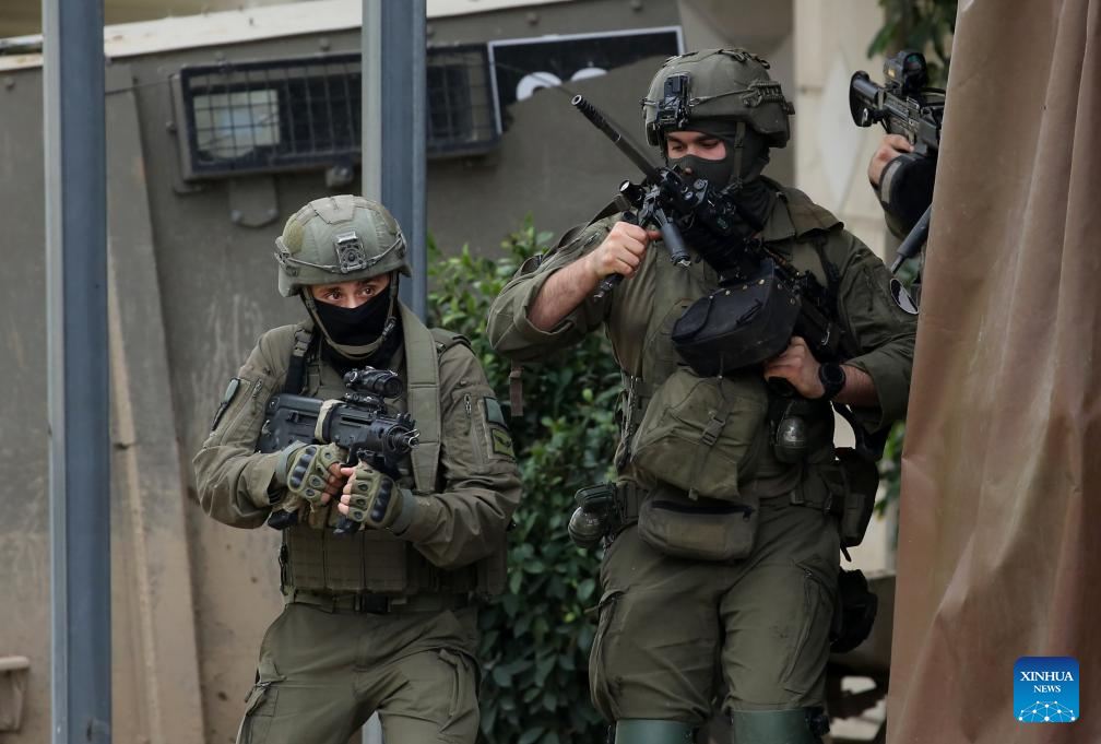Israeli soldiers are pictured during a military operation on a street in the town of Qabatiya, south of Jenin in the West Bank on Dec. 27, 2025.In the northern West Bank, Israeli troops maintained a tight siege on the town of Qabatiya for a second day. Qabatiya’s Mayor Ahmed Zakarneh said Israeli forces have closed entrances, imposed a curfew, damaged infrastructure and raided homes. (Photo by Nidal Eshtayeh/Xinhua)