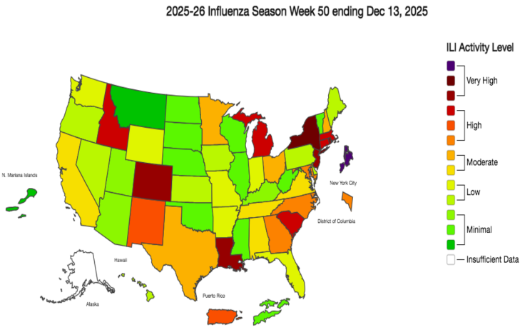 In any case, the CDC just confirmed that the flu is spreading much faster across the U.S. In their latest update from mid-December, they ranked each state by how much flu-like illness they are seeing—ranging from ‘very high’ to ‘minimal.’ Here are the places where the flu is currently hitting the hardest: