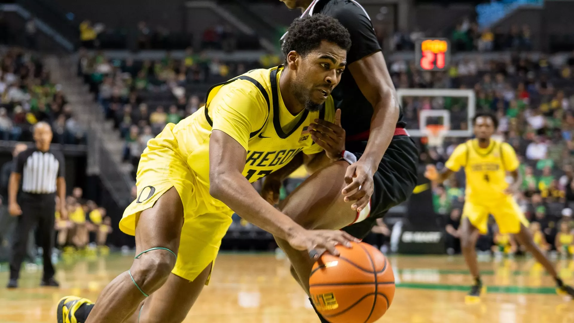 That lagged a bit in the middle of the first half, as Omaha put together a 12-2 run to get within 20-17. But the Ducks methodically pulled back out into a comfortable lead and were up double digits at halftime, 39-29, after a three-pointer at the buzzer from just inside halfcourt by Wei Lin.