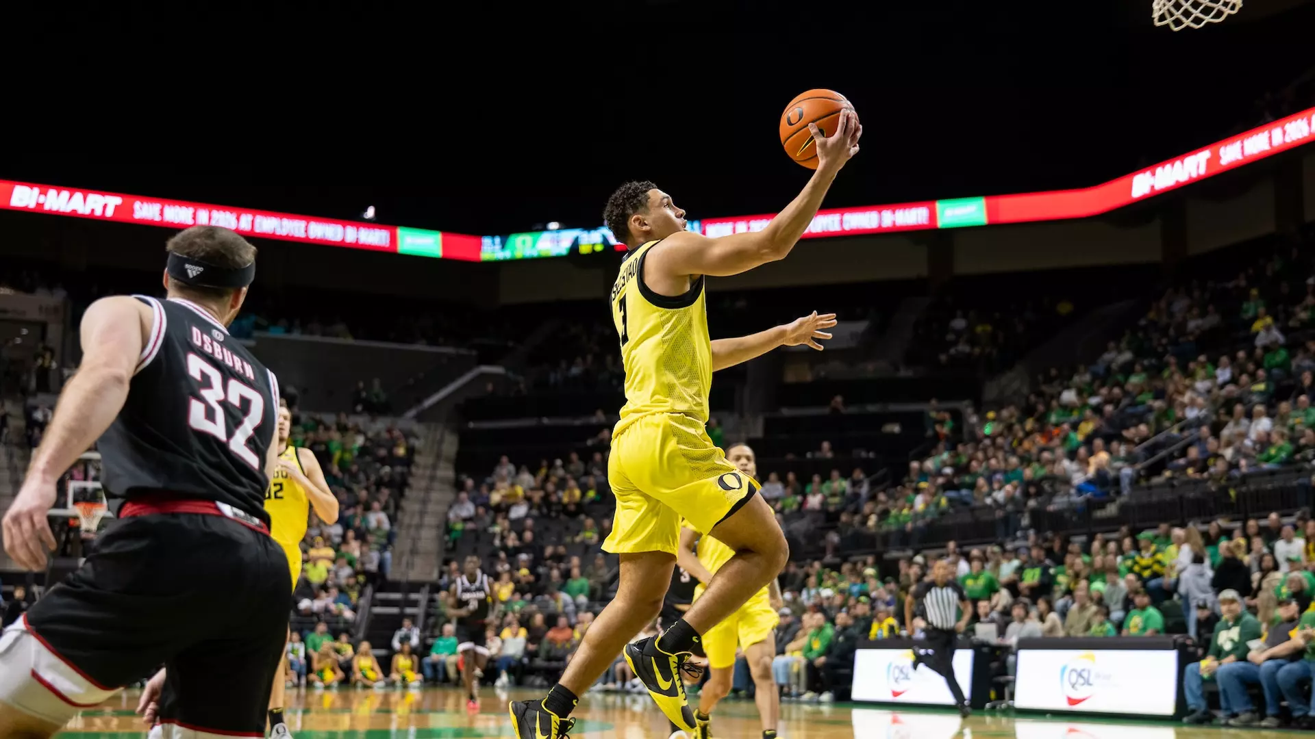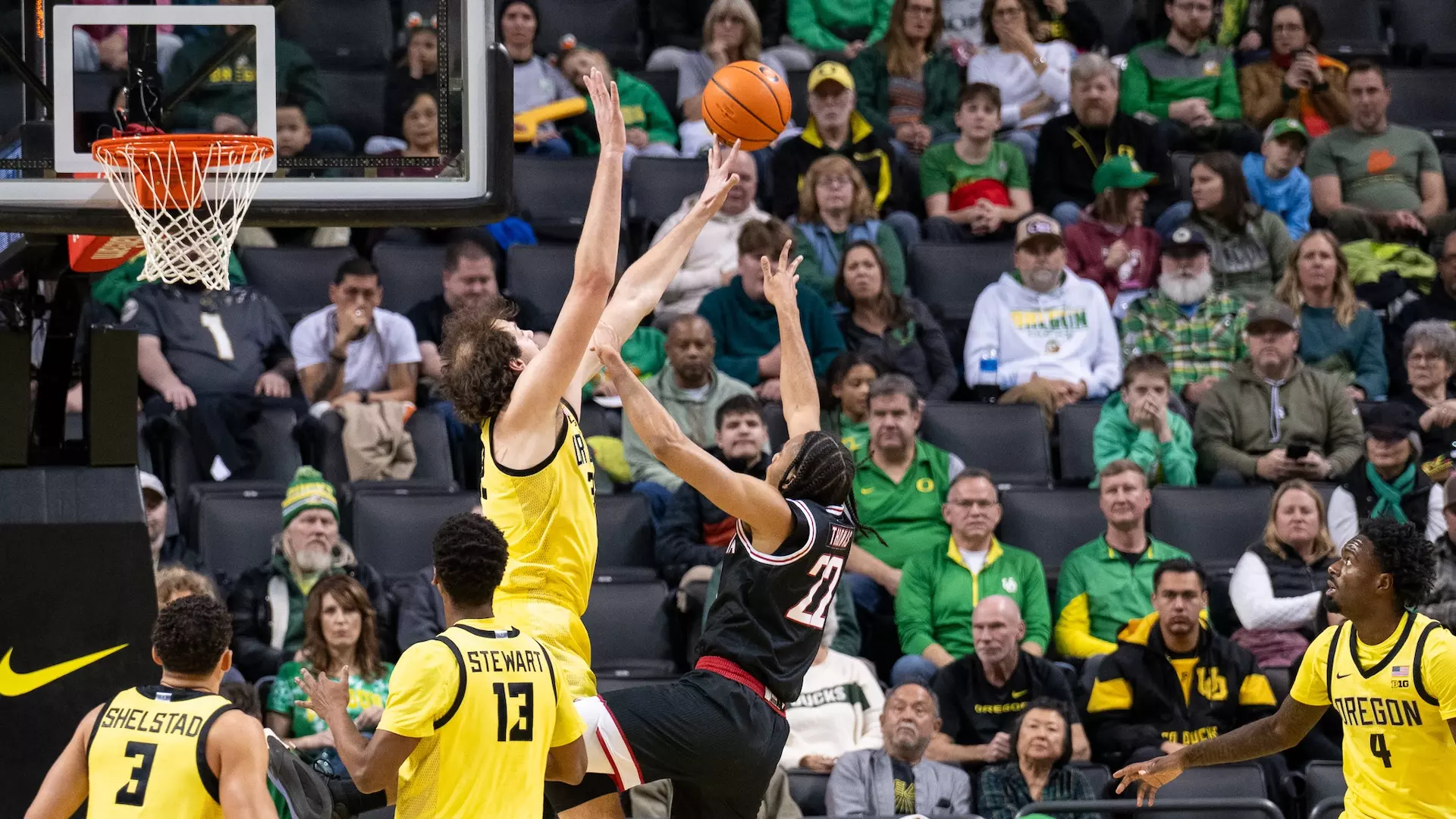How It Happened: The Ducks jumped out to an early 18-5 lead. They scored nine straight on three-pointers by Lindsay, Bittle and Simpkins to go up 11-3, then scored another seven in a row to make it 18-5 with 13:06 left in the first half. At that point Omaha had just two field goals.