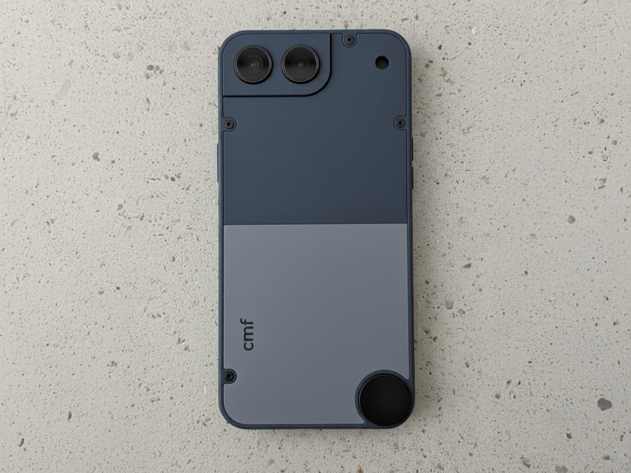What makes Ajmeri’s concept work is its complete lack of flagship pretension. The design has a satisfying, tool-like quality, with an aesthetic that leans closer to a Braun appliance than a miniaturized glass sandwich. The two-tone back panels, secured by exposed screws, are a direct nod to the modularity of the CMF Phone 1 and 2 Pro. That little circular element in the lower corner is a brilliant touch, practically begging for a lanyard or a clever magnetic accessory. The camera housing is integrated into a stepped corner plate, making it feel like a distinct, functional component rather than a generic camera island. It’s an honest object, designed to be held and used without demanding reverence.