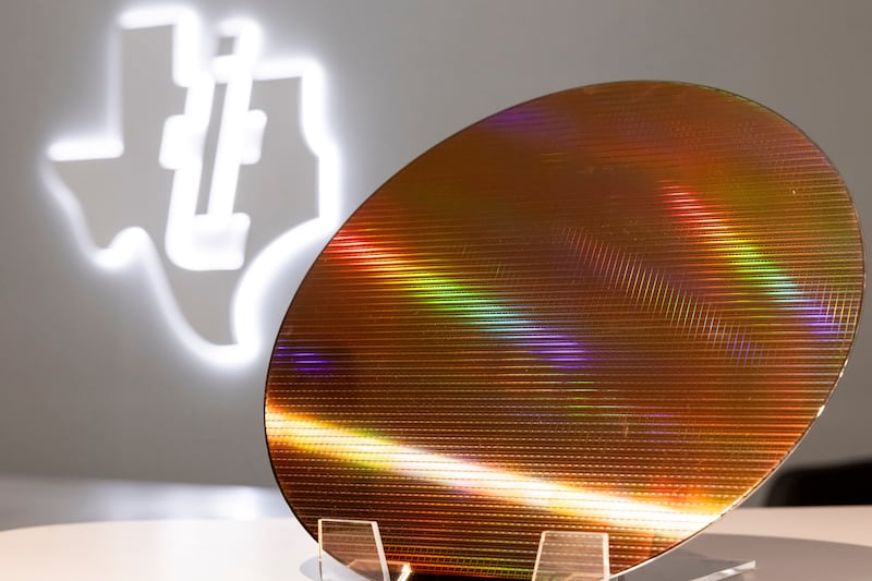 A 300mm semiconductor wafer manufactured at Texas Instruments’ new facility is seen on Wednesday, Dec. 17, 2025, in Sherman, Texas. | Brandon Wade, Associated Press for Texas Instruments