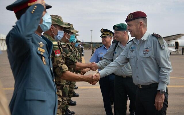 IDF chief Aviv Kohavi and head of Intelligence Research Amit Saar meet with Moroccan military officials, July 20, 2022. (Israel Defense Forces)
