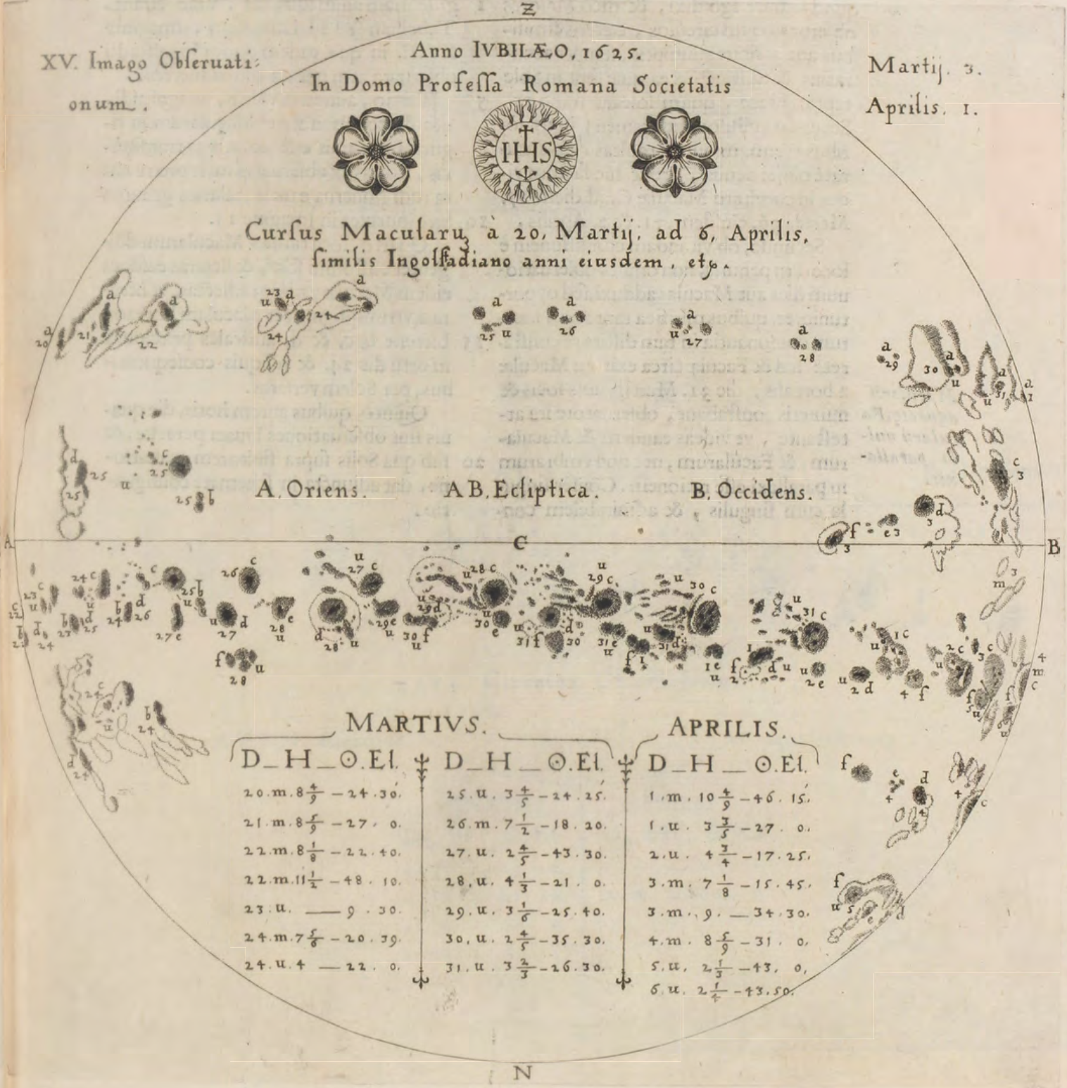 Christoph Scheiner made detailed sketches of sunspots starting in 1611; this example is from 1625. Credit: Courtesy of The Linda Hall Library of Science, Engineering & Technology