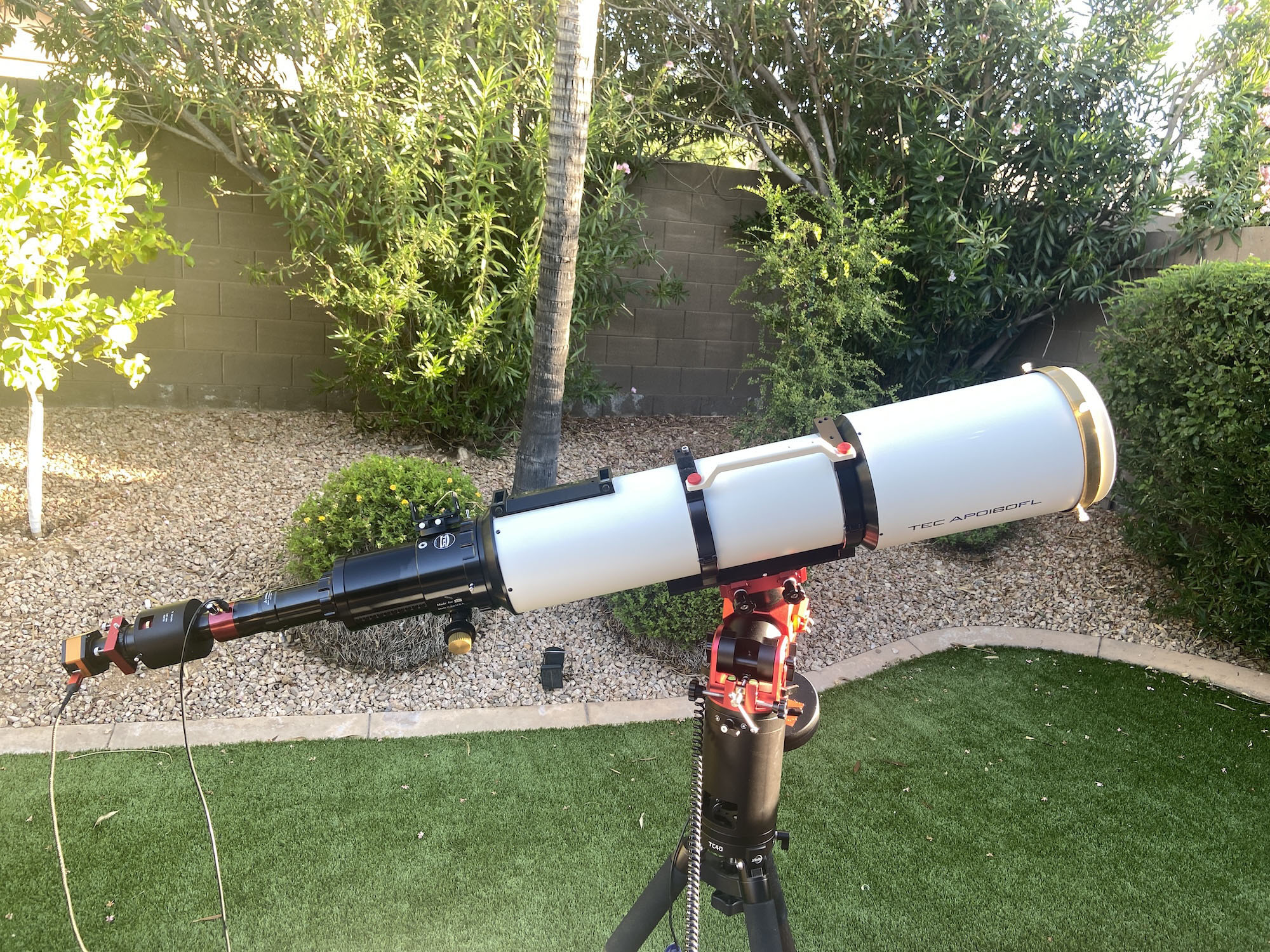 The author took many of the images in this story with this setup — a 6-inch TEC APO160FL scope and a double-stack with Solar Spectrum and Lunt Hα filters. Credit: Mark Johnston