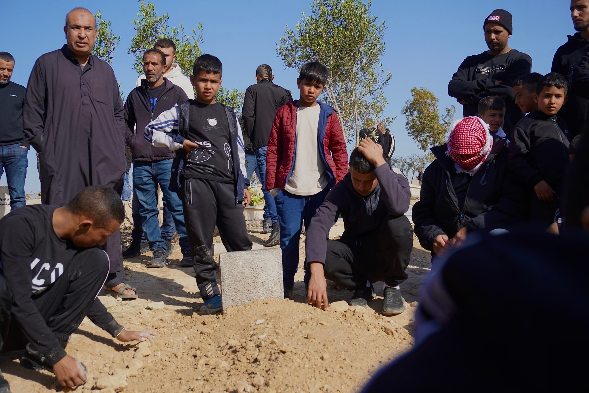 Long after most attendees had gone back down the hill, Tarabin’s sons and other male relatives remained next to his freshly dug grave.