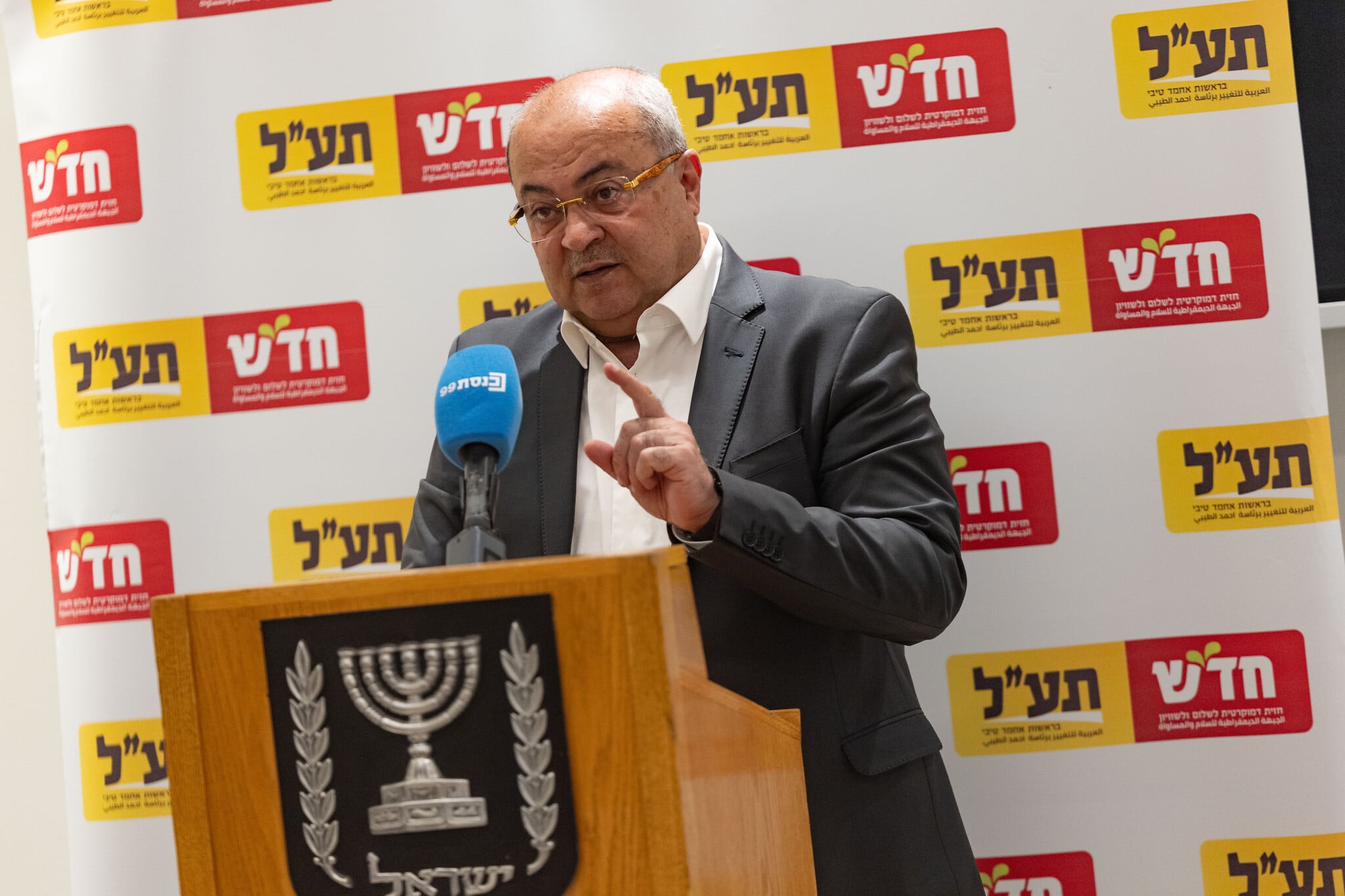 MK Ahmad Tibi speaks at a Hadash-Ta’al faction meeting at the Knesset in Jerusalem, January 5, 2026. (Yonatan Sindel/Flash90)