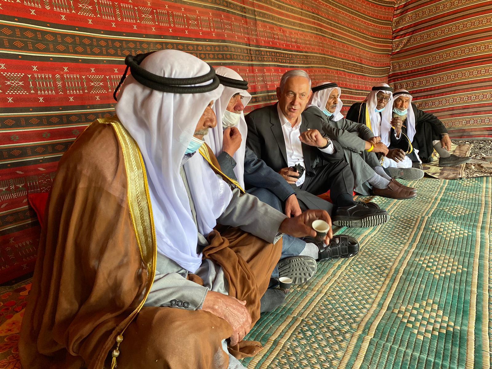 After visiting Tarabin and other Arab towns in the Negev that March, he posted a photo of himself sitting and drinking coffee with five Bedouin sheikhs. He captioned the picture: “Coffee with friends.”