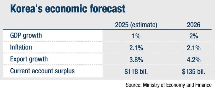 The finance ministry projected 2 percent gross domestic product (GDP) growth in 2026, marking the first time it has formally specified a growth target, up from an estimated 1 percent in 2025.
