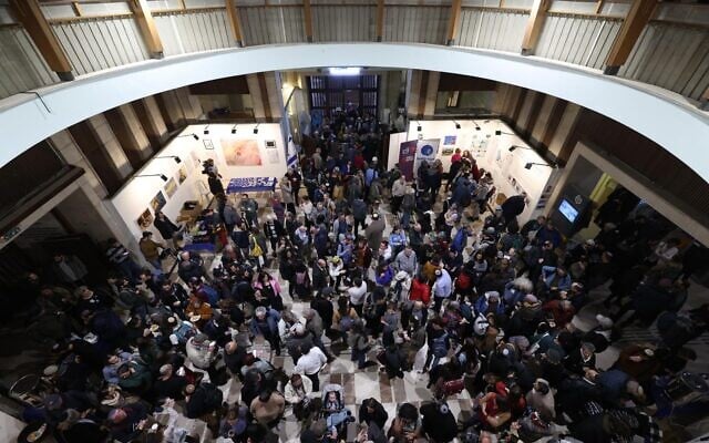Attendees of the second Smol Emuni conference gather in Jerusalem’s Heichal Shlomo building on February 28, 2024. (Gilad Kavalertchik/Smol Emuni)