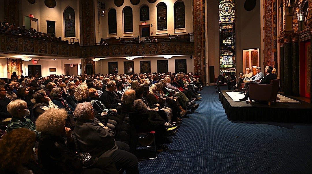 A panel on ‘The Jewish Tent at the Crossroads’ at B’nai Jeshurun in Manhattan drew over 400 people in person, and another 882 online, January 6, 2025. (Gil Getz/B’nai Jeshurun via JTA)