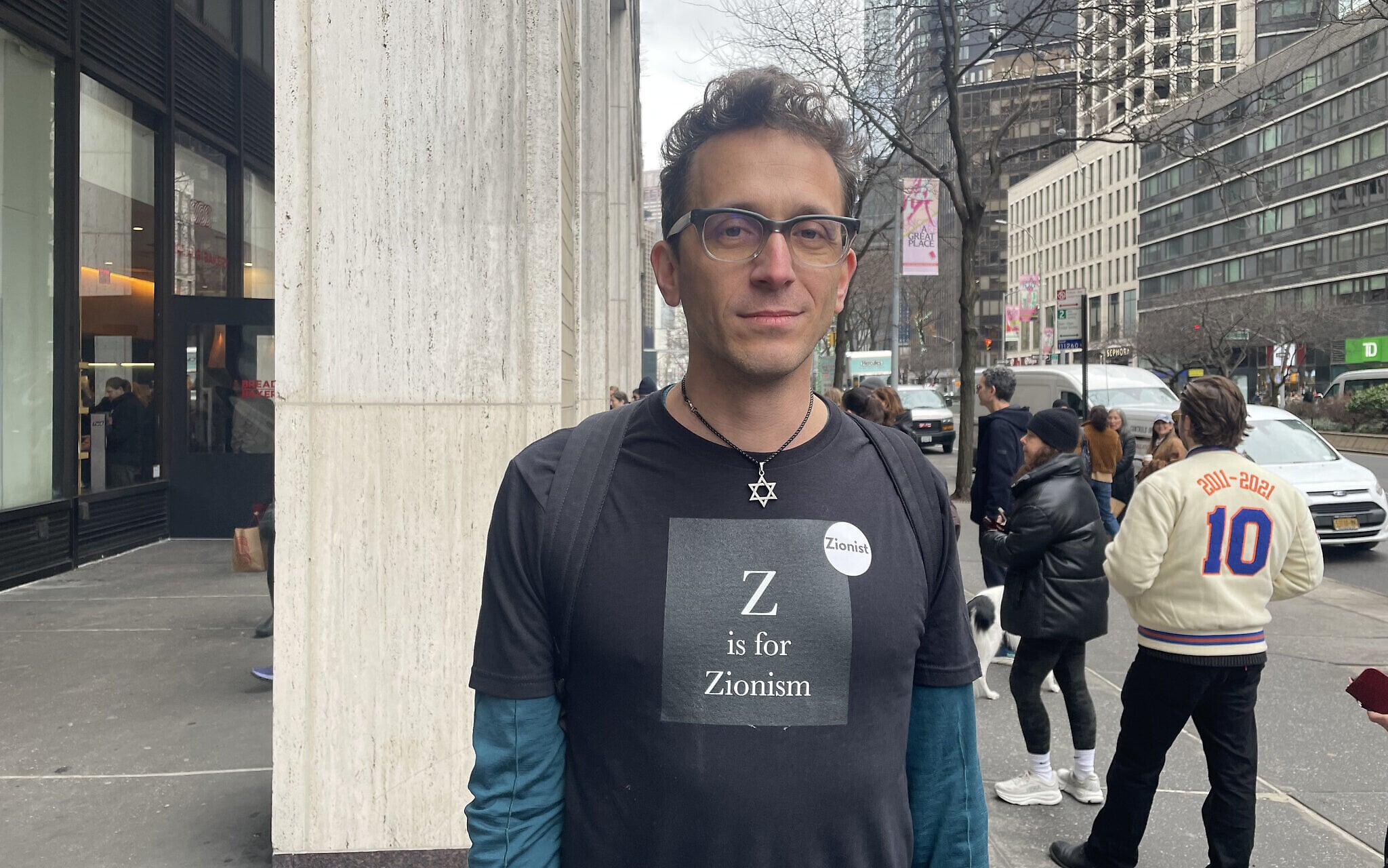 Shai Davidai outside Breads Bakery on the Upper West Side of Manhattan, January 9, 2026. (Luke Tress/Times of Israel)