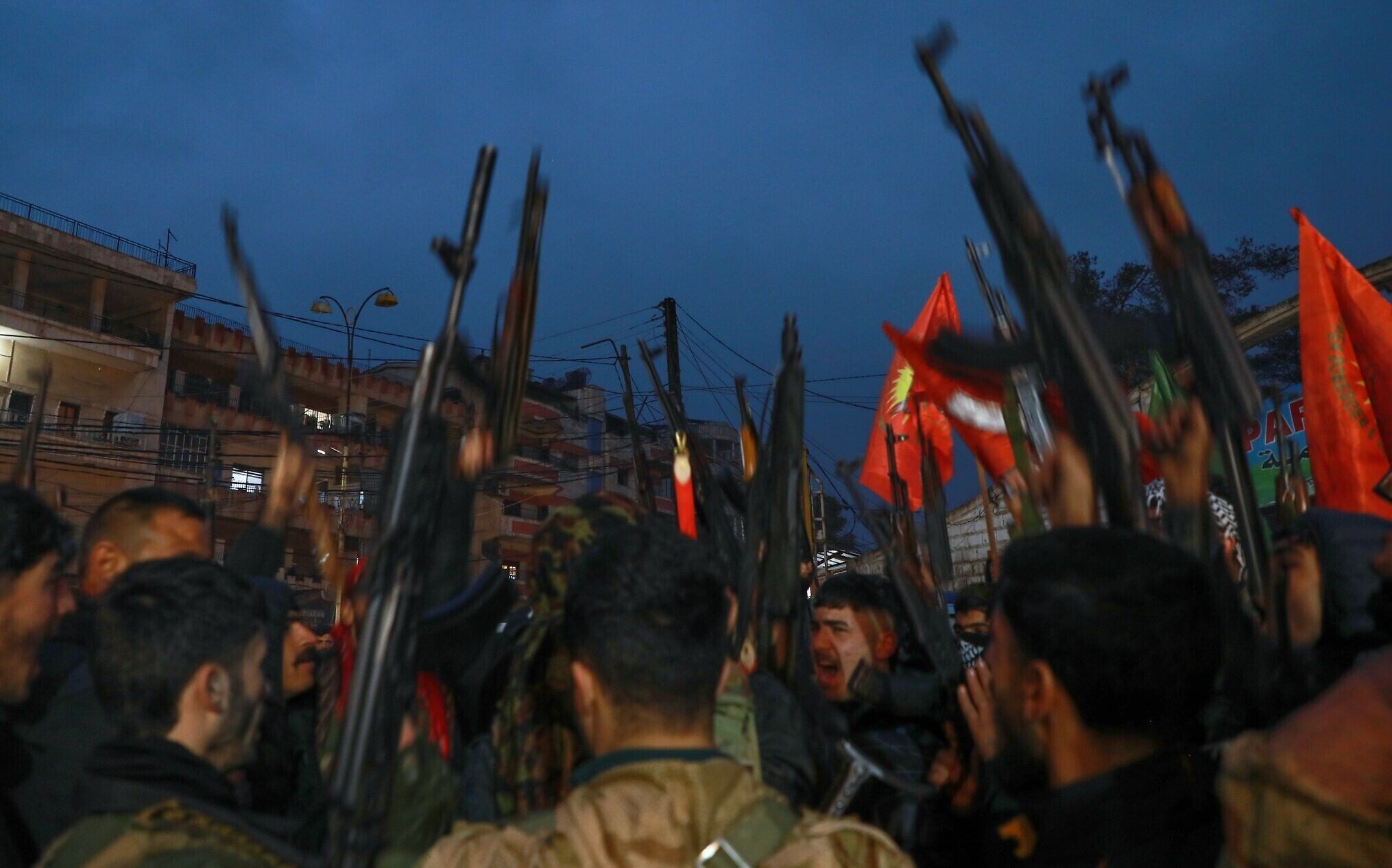 Kurdish fighters gather in Aleppo, Syria, January 9, 2026. (AP Photo/Hogir Al Abdo)