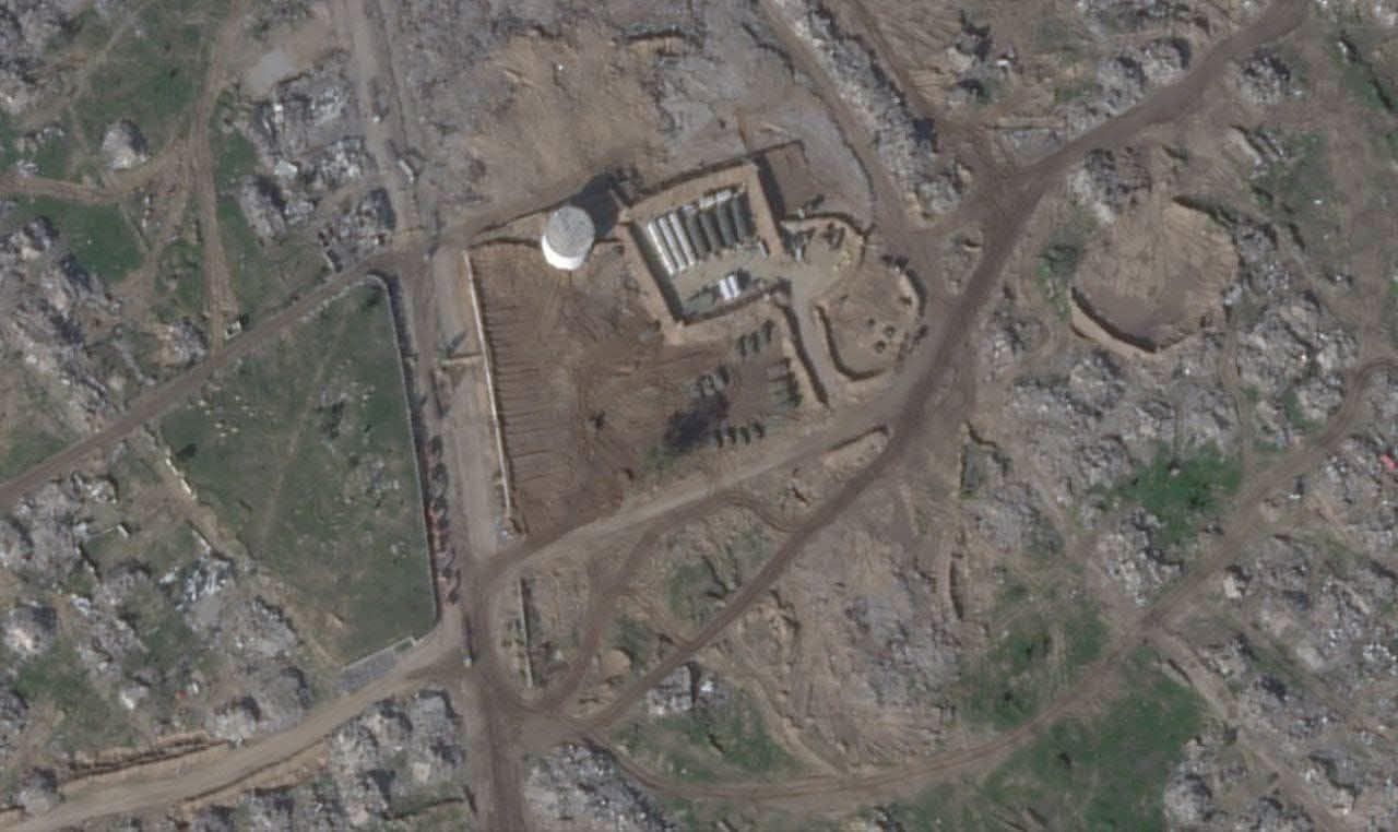 Satellite imagery reveals that Israeli occupation forces have established a new military site atop the ruins of Al-Hajj Mohammed Cemetery in Ma’an, east of Khan Younis in the southern Gaza Strip, after fully bulldozing the graves.