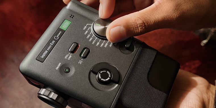 So why not combine both of them? That’s exactly what Fujifilm did on January 7 when it announced its Instax Mini Evo Cinema camera: a retro-styled vertical-gripped camera that can instantly print photos, share photos or videos to social media, and let you capture photos throughout the decades with its “Eras Dial.”