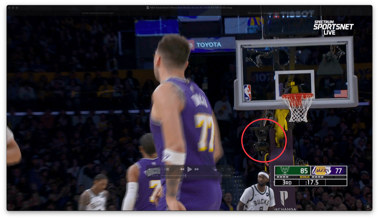 The problem, however, is that you would be sitting there watching Giannis or LeBron or Luka glide down the court, and suddenly you would be ripped out of the experience because the entirely unnecessary producer decided you should be looking through one of these baseline cameras under the hoop: