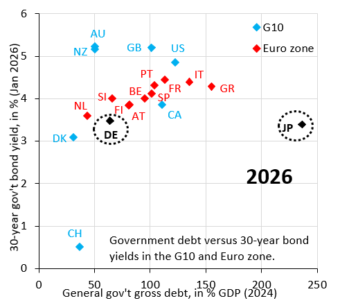 Against the US Dollar, the Japanese Yen is closing in on the lows it reached in 2024. In trade-weighted terms, the Yen is actually already weaker than it was then, because its current depreciation is against a Dollar that’s much weaker than back in 2024. It’s tempting to think that official intervention will stop this slide and Japan’s Ministry of Finance (MoF) is making noises in that direction. But any intervention will be just as ineffective as in the past. The Yen is falling because markets want to see interest rates rise, which are still at artificially low levels and don’t compensate investors enough for what they see as rising risk of default. Unfortunately, while higher interest rates may stabilize the Yen, they risk pushing Japan into a fiscal crisis. Japan is trapped.