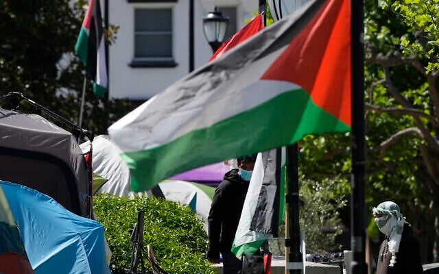 Anti-Israel protest tents set up in front of Sproul Hall at the University of California, Berkeley, in Berkeley, California, May 2, 2024. (AP/Jeff Chiu)