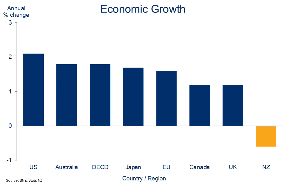 Finance Minister Nicola Willis blamed Donald Trump’s ‘Liberation Day’ tariff shock in April, but the chart below shows New Zealand is the exception, with other peer economies growing solidly despite the same news.