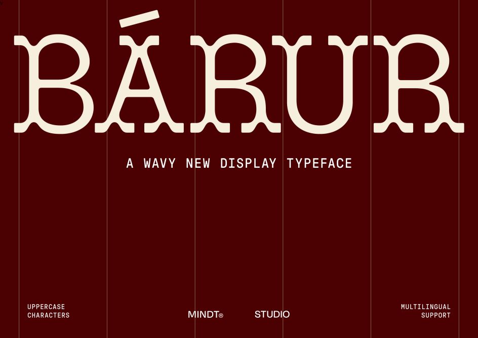 Though legible at smaller sizes, Bárur’s strengths emerge most powerfully in large-scale applications: logos, branding systems, packaging, editorial headlines and posters. As Mindt Studio’s first type release, it sets an intentional tone: expressive, tactile, unmistakably fluid. This is display typography that feels alive, carrying the pulse of natural rhythms into contemporary design contexts.