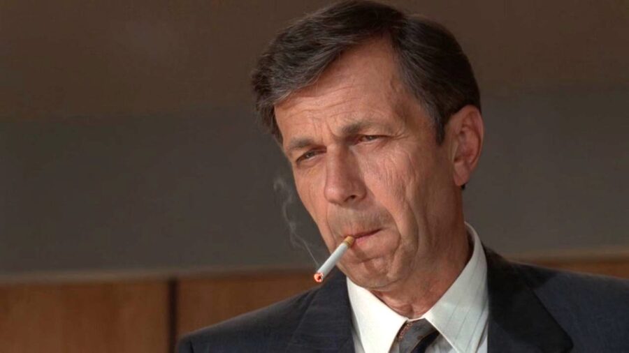 Let’s start from the beginning; in this case, the very first episode of The X-Files. William B. Davis appears in this episode but never says anything. In the scenes where Scully is meeting with her superiors at the FBI, the Cigarette Smoking Man just lurks in the background, forcing the audience to wonder what the heck this creepy guy’s deal is.