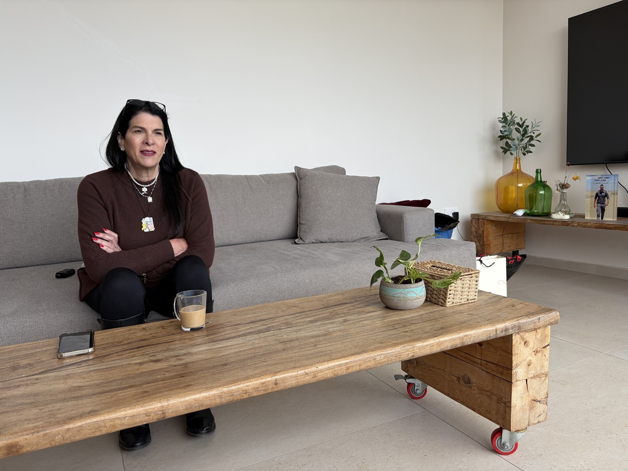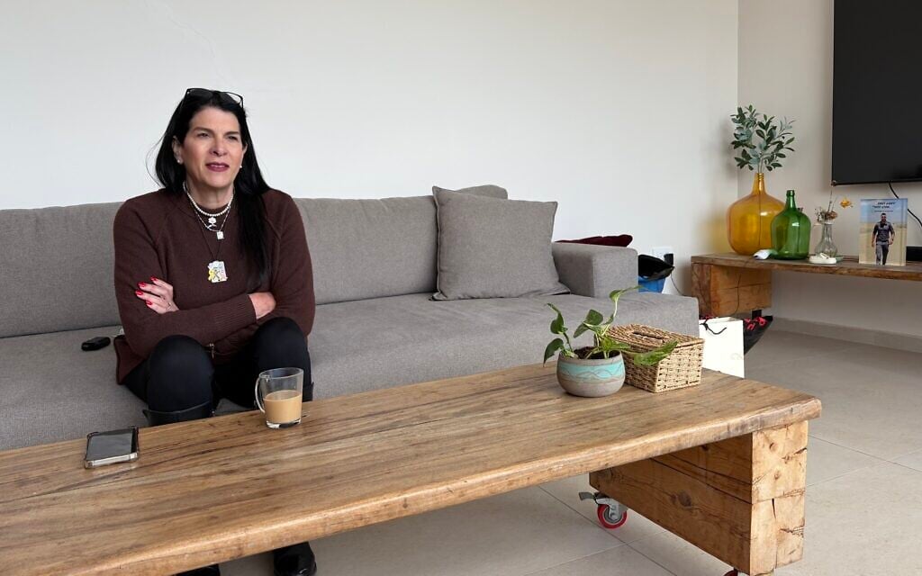 Talik Gvili sitting at her home in Meitar on January 20, 2026 (Jessica Steinberg/Times of Israel)