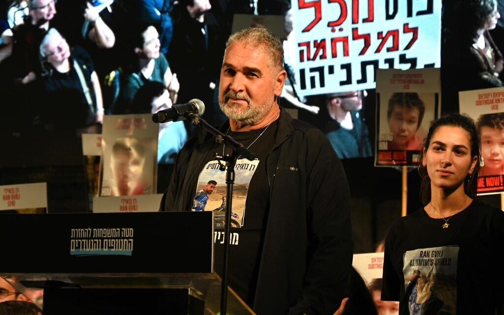 “They’re the only ones who get it — who get the feelings of waiting and the pressure of the waiting, and they’re holding us. That’s what we promised each other down to the last hostage,” said Gvili, adding that Simcha and Ayelet Goldin — the father and sister of IDF soldier Hadar Goldin, who was killed in 2014 and whose body was held by Hamas until this past November — are a constant source of support.