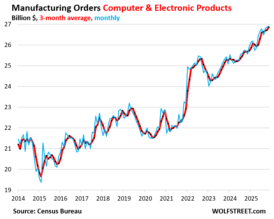The surge in orders over the past five months is another signal of strong business investment fairly broadly, but also related to the buildout of AI infrastructure that has been going on for some time.