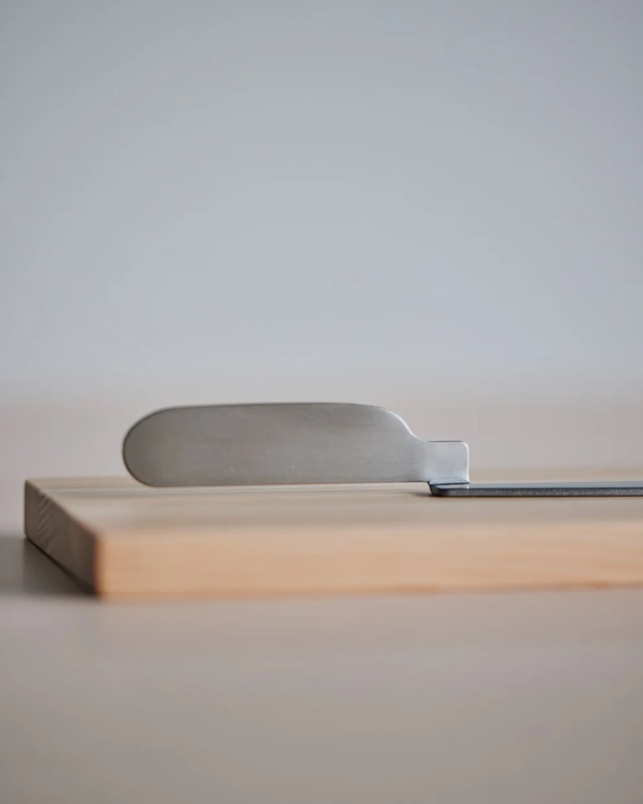 The genius of Oku lies in that distinctive bent handle. Instead of resting horizontally like every other knife you own, it hooks over the edge of a plate or wooden board, elevating the blade and creating this almost sculptural presence on your table. It’s a design choice inspired by traditional Japanese place settings and arrangement principles, where every object has intention and purpose. But it’s not just about aesthetics. That elevated position means the blade never touches the table surface, keeping things cleaner and adding an element of interaction between the knife and whatever it’s sitting on.
