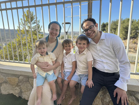 YU Graduate Moshe Pahmer, pictured at right with his family, has been enjoying the Reichman program and life in Israel.