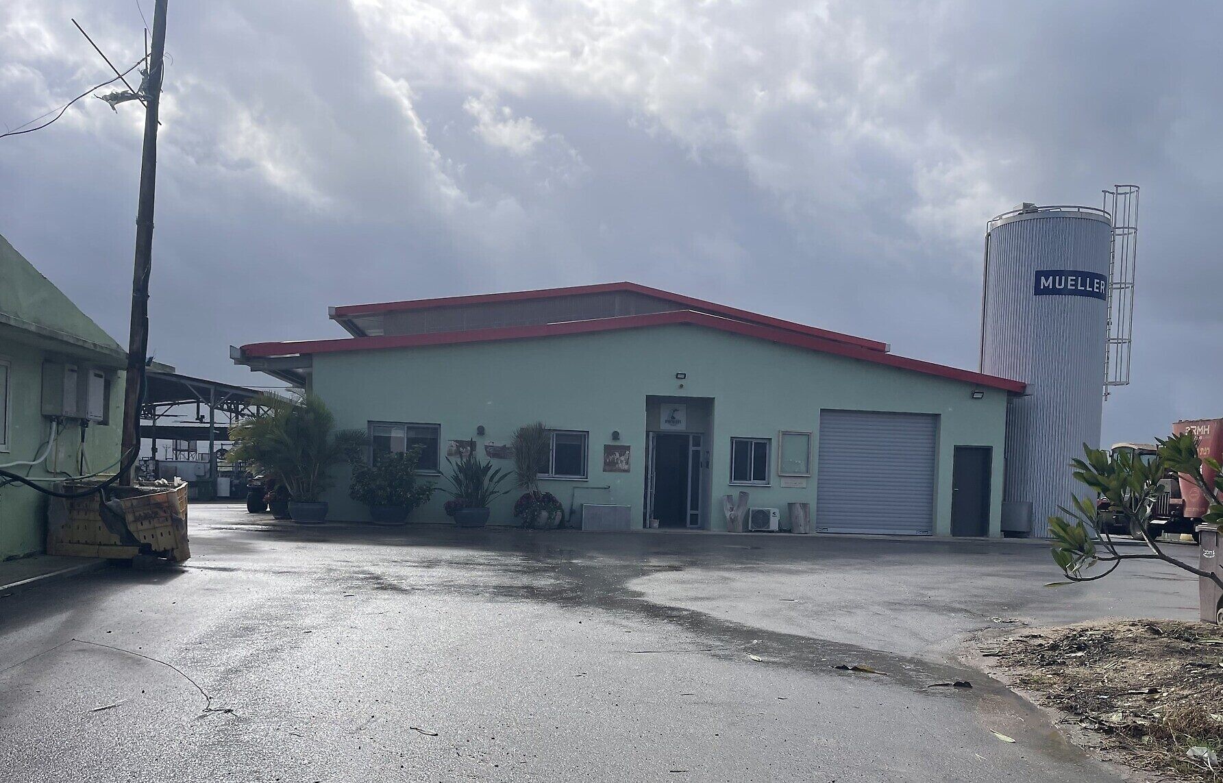 The dairy at Kibbutz Alumim, photographed on January 13, 2026. To the left is the one remaining wall of the foreign farmhands’ building that was wrecked during the October 7, 2023, Hamas onslaught. The cowsheds can be seen between the dairy and the farmhands’ former accommodation. (Sue Surkes/Times of Israel)