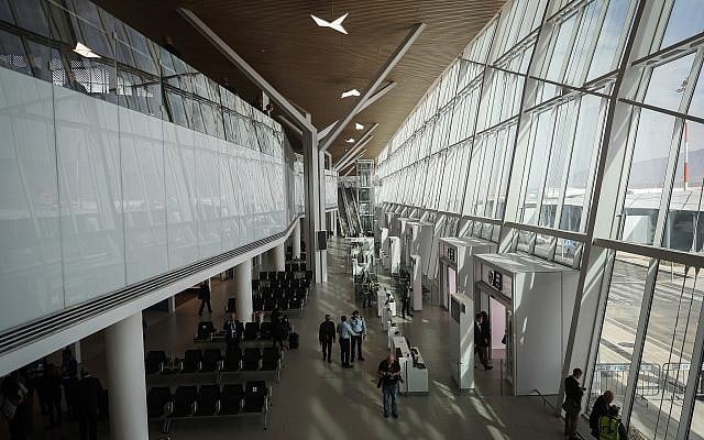 The new Ramon airport, named in memory of Ilan and Asaf Ramon, during the official opening ceremony, near the southern Israeli city of Eilat, on January 21, 2019. (Yonatan Sindel/Flash90)