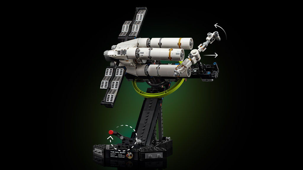 Launch into the realm of cinematic science fiction with the LEGO® Icons Project Hail Mary (11389) spaceship model kit for adults. Enjoy a creative journey as you craft each detail of this microscale replica, which captures the design of the iconic interstellar spacecraft. Turn the crank to send the crew module into orbit, simulating the centrifugal gravity system from the movie. Then add the Ryland Grace minifigure and Rocky figure to complete your display. This detailed model makes a striking centrepiece for the home or office and a perfect birthday or Christmas gift for sci-fi lovers. Build smarter with the LEGO Builder app – zoom, rotate in 3D, track progress and follow step-by-step digital instructions. Set contains 830 pieces.