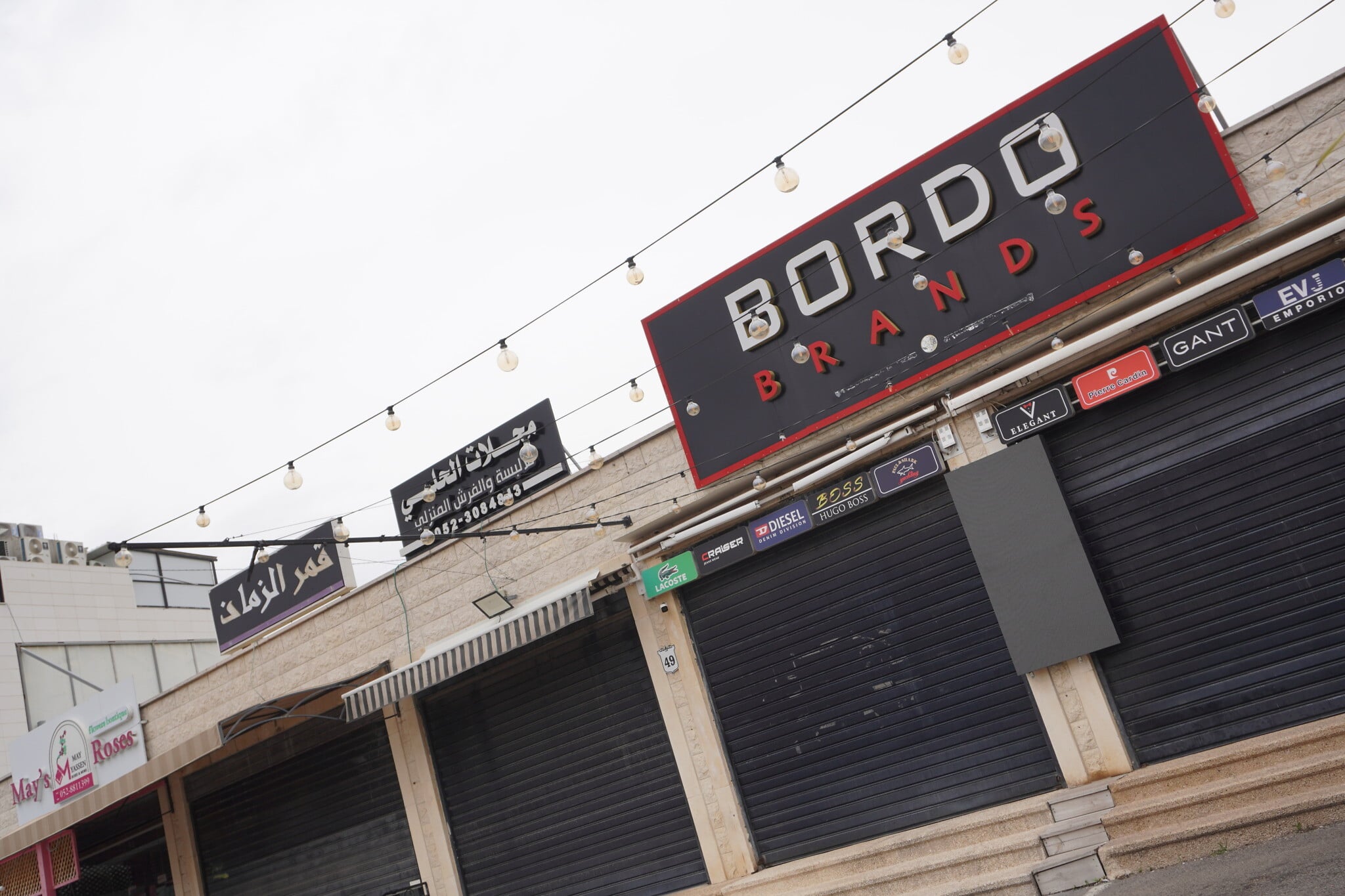 Shops in the northern city of Sakhnin remain shuttered during a nationwide strike in Arab society over police handling of violent crime on January 22, 2026. (Charlie Summers/Times of Israel)