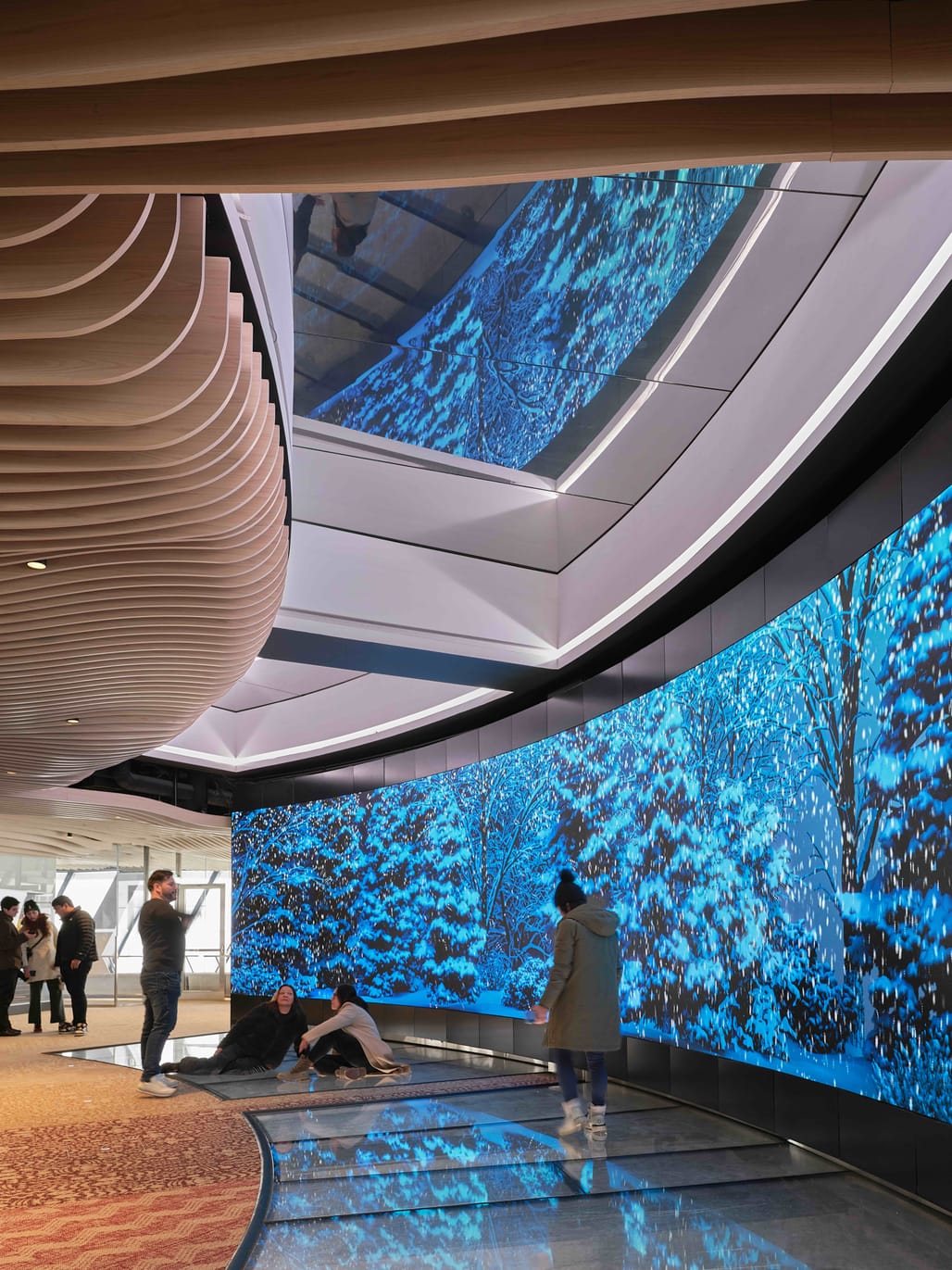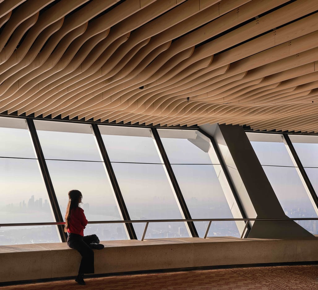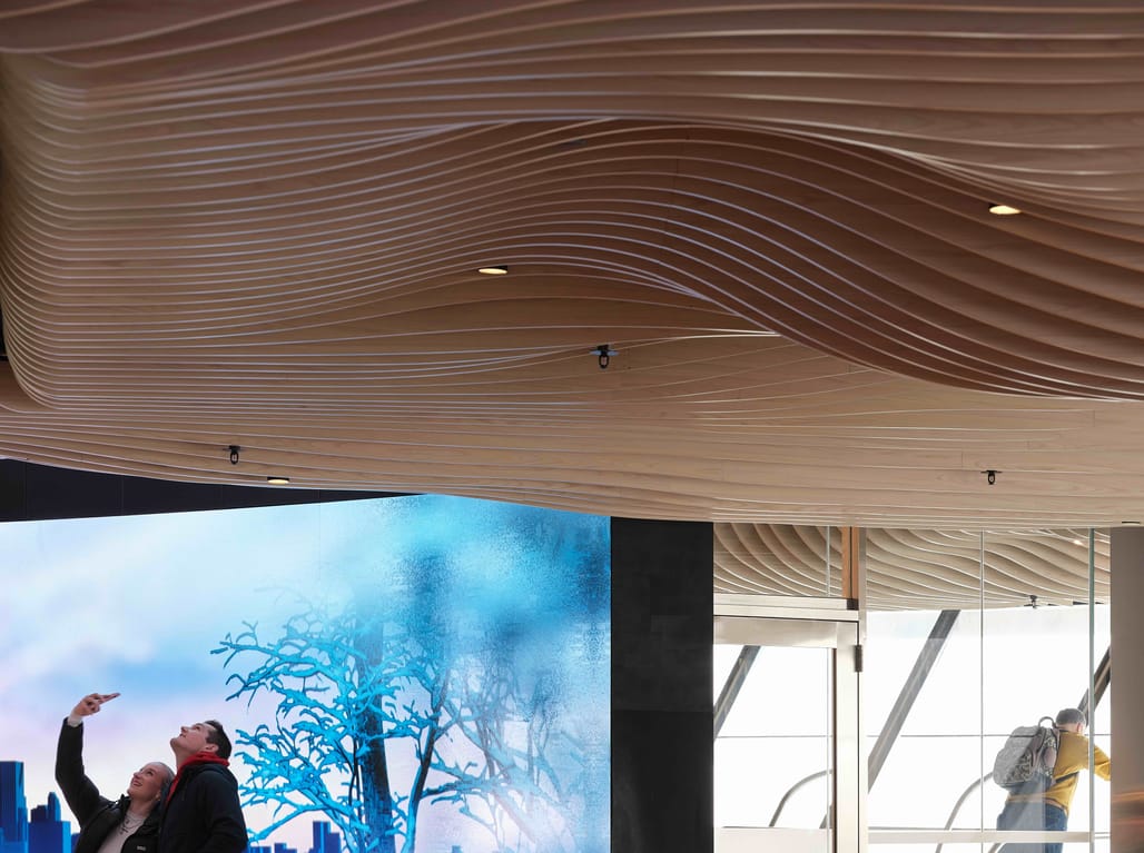The renovation was developed following a 2021 design-build competition win by a multidisciplinary team led by Boszko & Verity. The design draws on biophilic references to the Canadian landscape, including arboreal forms, geological textures, and water-like reflectivity, while responding to the Tower’s radial structural geometry.