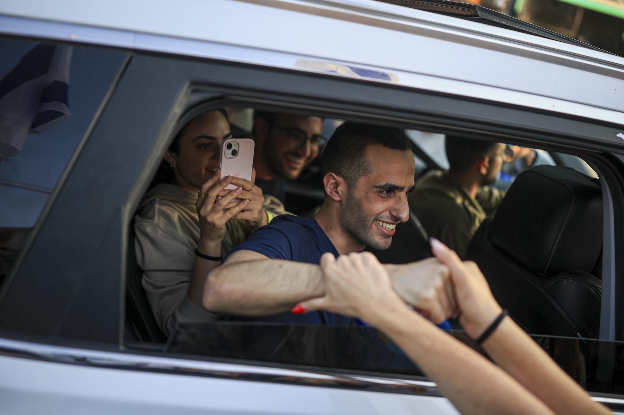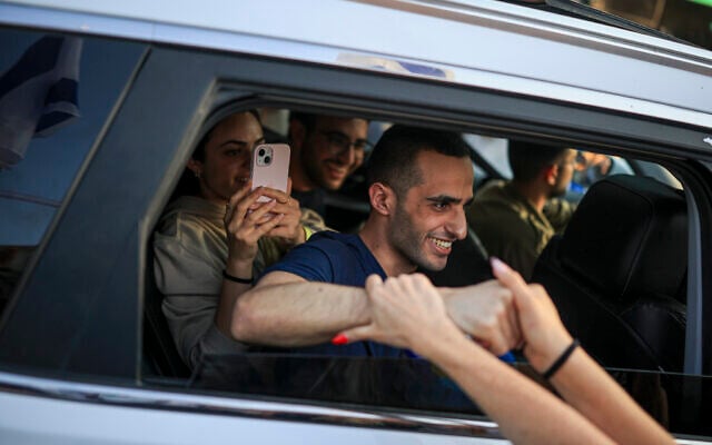 Freed hostage Nimrod Cohen arrives in his hometown of Rehovot, October 16, 2025. (Flash90)