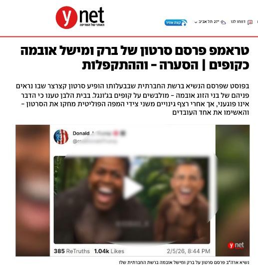 The story about Trump’s posted video of the Obamas (which I’ve blurred and which I won’t even describe because it’s so sickening) is also all over the press here. Why? Isn’t that outrage really an internal American issue?