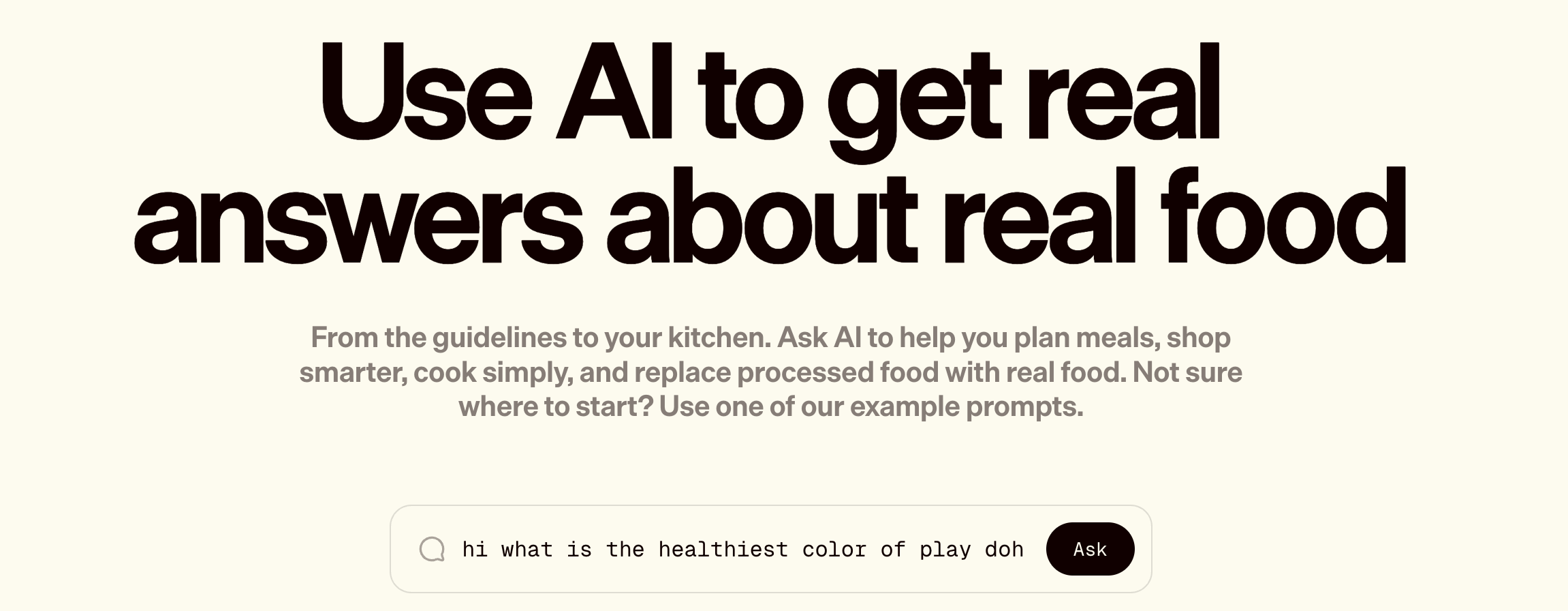 “Use AI to get real answers about real food,” a new website called realfood.gov proclaims. “From the guidelines to your kitchen. Ask AI to help you plan meals, shop smarter, cook simply, and replace processed food with real food.” The website then has an “Ask” chatbox where you can ask any question. Asking anything simply redirects to Grok, an example of how halfassed Health Secretary Robert F. Kennedy Jr.’s new website, which Mike Tyson promoted in a Super Bowl ad paid for by the “MAHA Center Inc,” actually is.