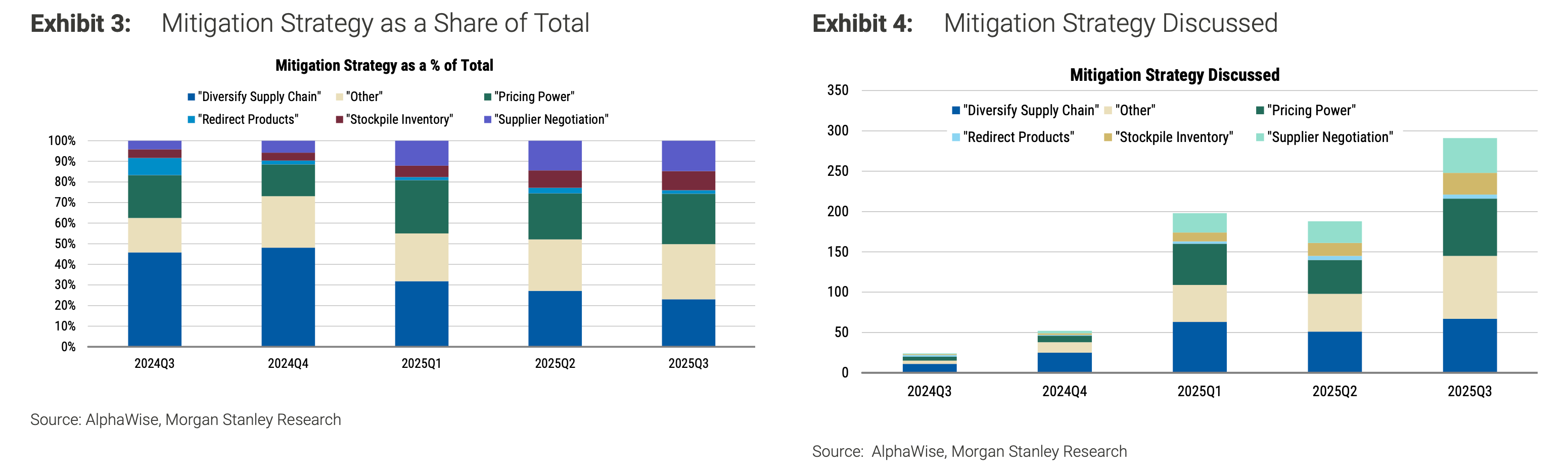 This is in line with Morgan Stanleyβs analysis of Q2 earnings calls: βUnsurprisingly, we saw a significant increase in the number of mentions of tariff mitigation strategies last quarter with many companies citing multiple strategies.β