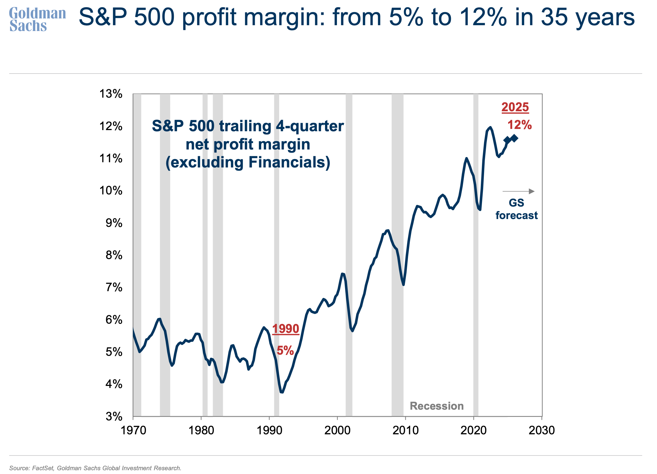 Goldman Sachs also has yet to publish forecasts for 2026. (These calls typically come later in Q4.) However, they have been discussing the prospects for growth in profit margins.