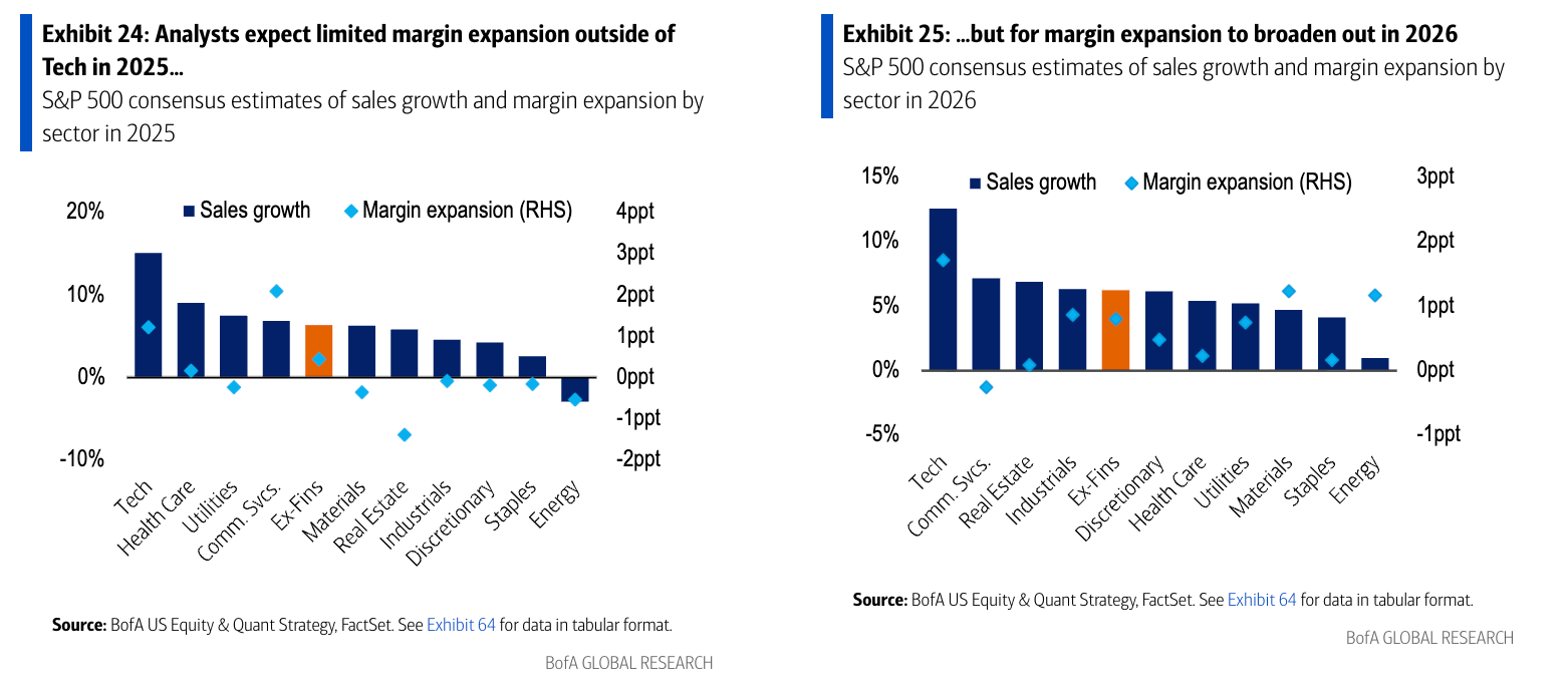 βDrivers for margin strength include operating leverage, continued eο¬ciency gains (AI and others), slowing employment inflation in many labor-intensive sectors, and the potential for cost-cutting from deregulation,β BofAβs Savita Subramanian wrote Wednesday.