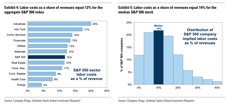 Labor represents a significant cost across industries. (Source: Goldman Sachs)