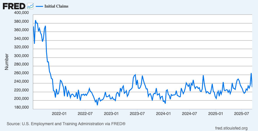 πΌ New unemployment claims fall, total ongoing claims remain elevated. Initial claims for unemployment benefits declined to 231,000 during the week ending Sept. 13, down from 264,000 the week prior. This metric remains at levels historically associated with economic growth.